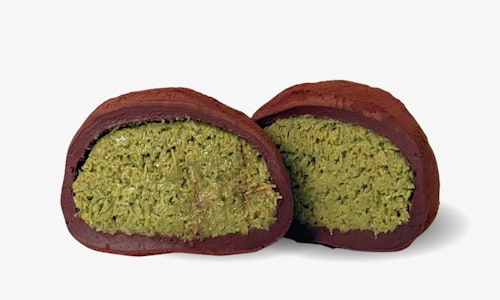 pistachio kunafa center, hint of tahini, cocoa-marshmallow coating, cocoa dusted